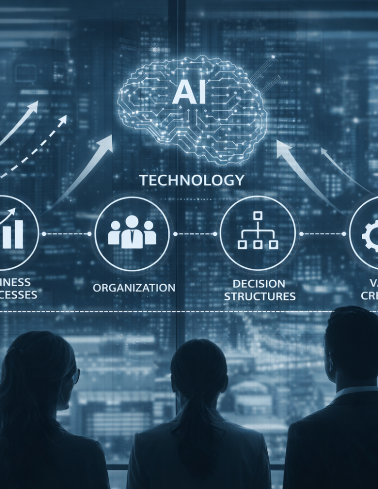 Wirklicher Nutzen entsteht erst, wenn KI nicht isoliert als Tool betrachtet wird, sondern als Bestandteil von Geschäftsprozessen, Entscheidungsstrukturen und Wertschöpfungsketten über alle Unternehmensbereiche hinweg.